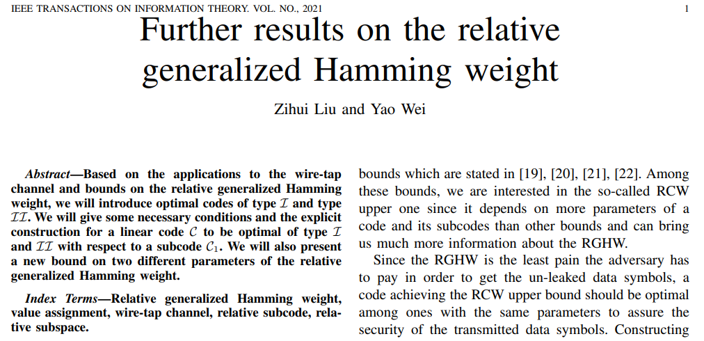 论文连接:DOI:10.1109/TIT.2021.3078064